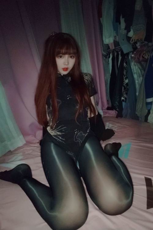 二次元美女古川kagura – 亮丝黑旗袍 / 42P